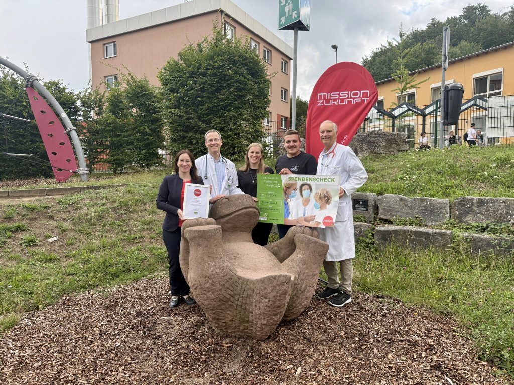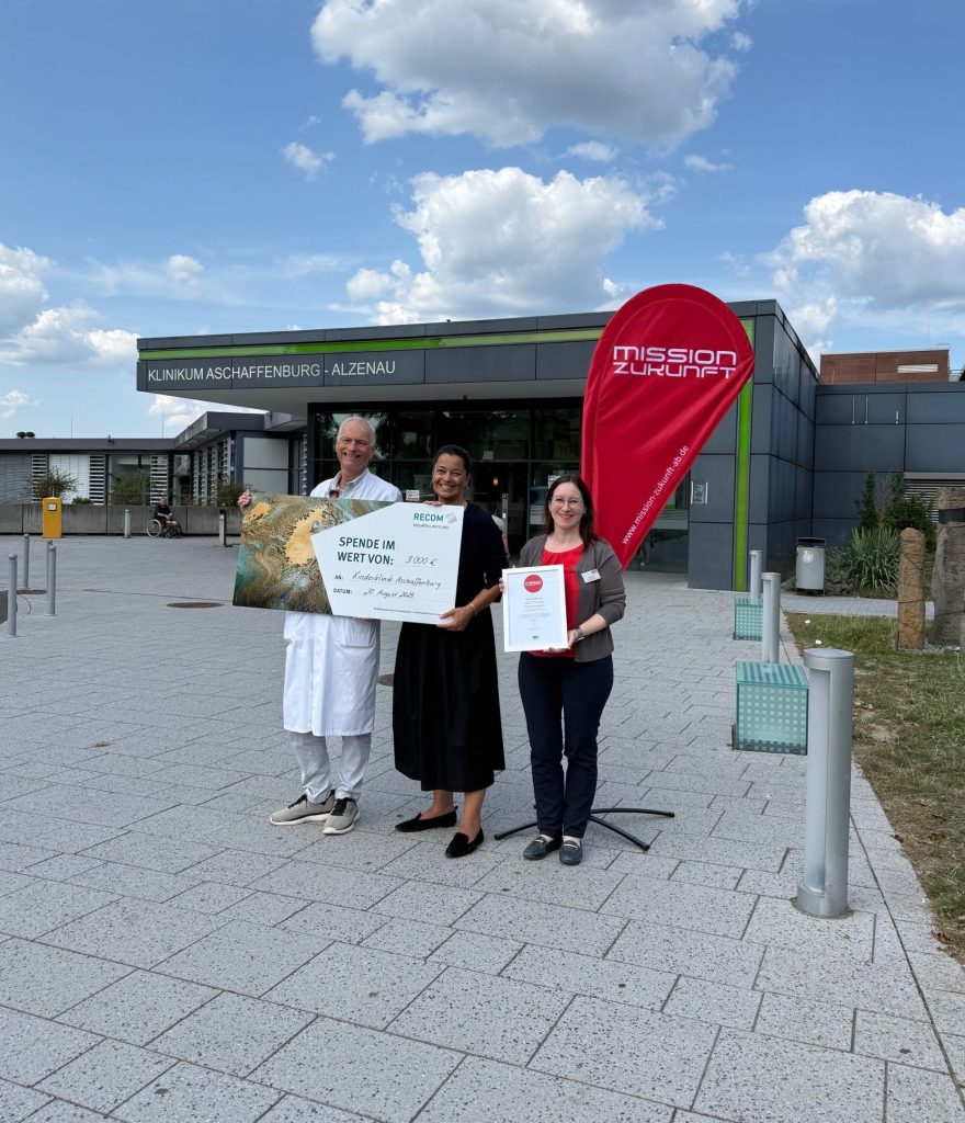 Mit Energie für die Kleinsten: Die Mitarbeitenden der RECOM Recycling GmbH haben bei einem internen Radelwettbewerb gemeinsam 2.884 Kilometer zurückgelegt. Die Geschäftsführung stockte die erradelte Summe auf und übergab 3.000 Euro an die Mission Zukunft zugunsten des neuen Eltern-Kind-Zentrums (ELKI) am Klinikum Aschaffenburg-Alzenau.
